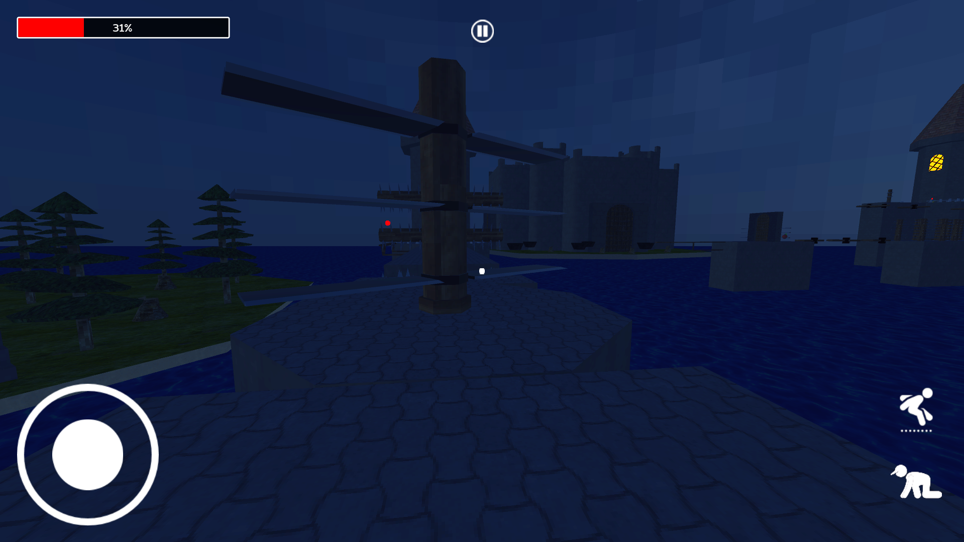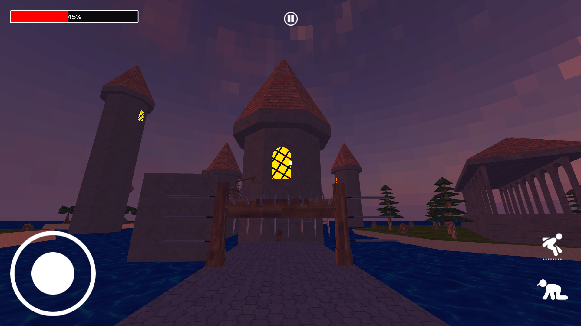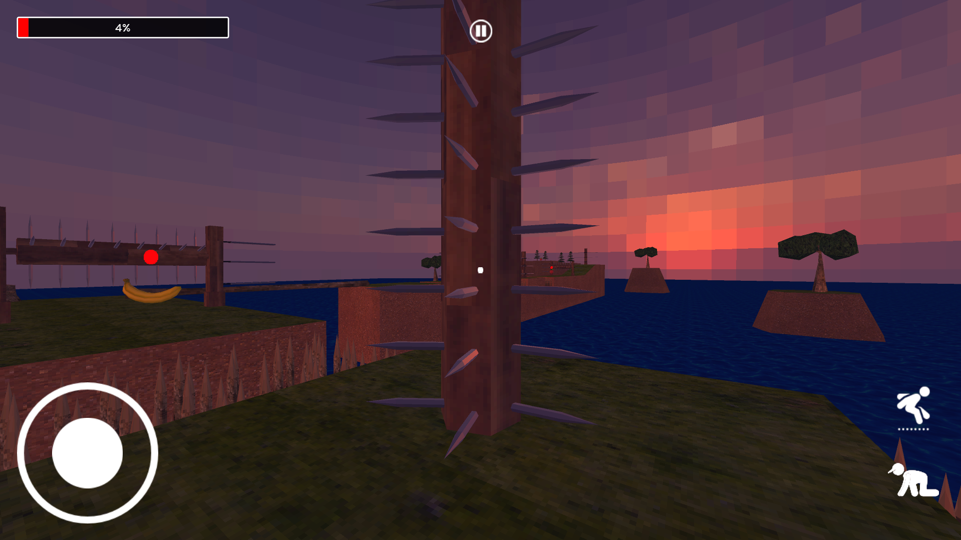 Ruka is swahili for jump. In Rukia 3d, you have to rush to the finish line dodging obstacles like spikes, moving platforms and blades, as your health constantly decreases. Along the way you can collect fruits to replenish your health. Use narrow ledges to climb towers and try not to fall into the water below.